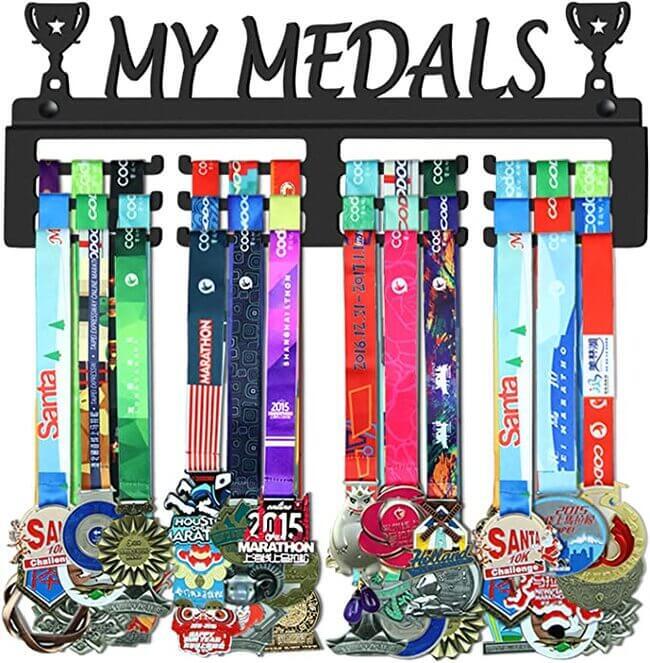 Deze medaillehouder is perfect voor wie veel medailles heeft verdiend en ze met trots wil ophangen. Met de drie rijen en 12 individuele haken kun je meer dan 50 medailles ophangen, en het ontwerp met de brede curve maakt het gemakkelijk om ze op te hangen.