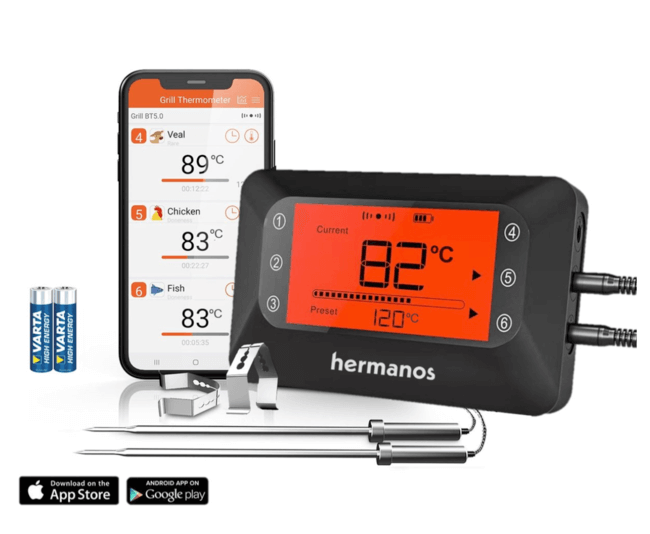Altijd je vlees perfect gaar? Doe de thermometer in het vlees, stel de App in, en wacht tot het alarm afgaat. Zo simpel kan het zijn! De Hermanos Bluetooth Vleesthermometer is de perfecte aanvulling voor elke keuken. Met deze compacte thermometer kun je snel en nauwkeurig de kerntemperatuur van elk gerecht meten voor een perfecte bereiding, elke keer weer.