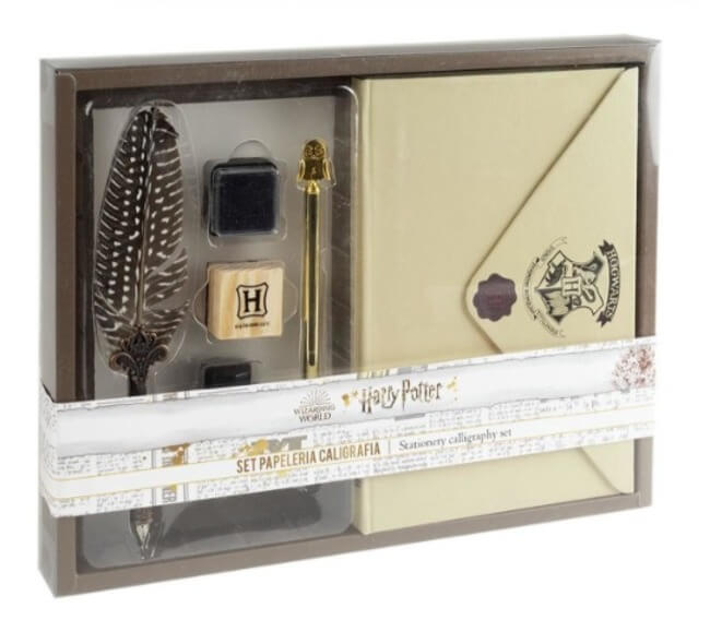 Dit is echt een prachtige luxe schrijfset - perfect voor elke schrijvende of Harry Potter fan! De set bevat een A5 notitieboekje, een pen met veer, 1 pen, zwarte inkt en een stempel, alles gepresenteerd in een prachtige geschenkdoos. en vormt een mooie aanvulling op elk bureau of kantoor.