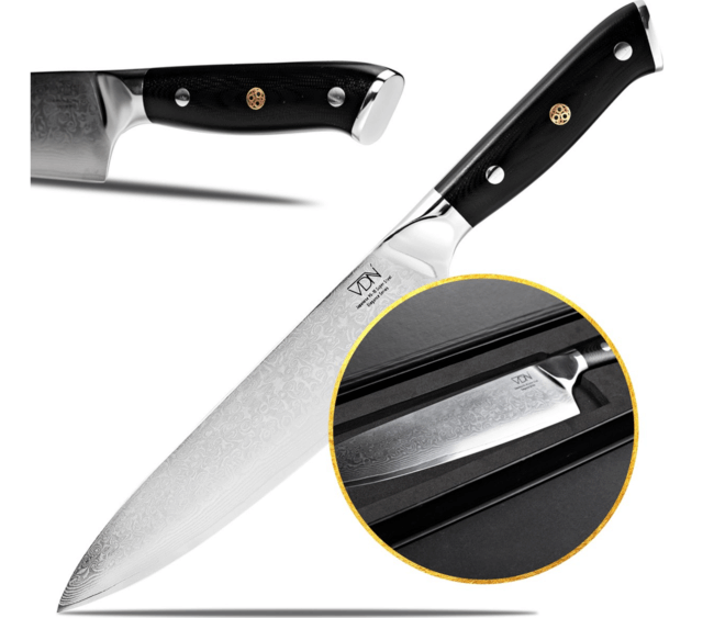 Als je geliefden graag samen koken, is een professioneel koksmes een must! Het lemmet meet 21cm en is gemaakt van 66 lagen Japans staal van de hoogste kwaliteit. Gesmeed door ambachtslieden en perfect uitgebalanceerd.