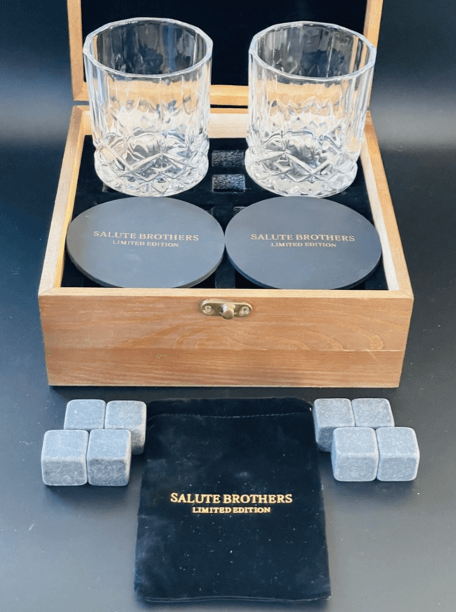 Een goede Whiskey wordt gedronken uit echte Whiskey Glazen. Iets dat elke man wil hebben en jarenlang blij van zal worden elke keer als hij het ziet. De glazen en onderzetters komen in een mooie houten doos. Tot slot zitten er 8 granieten stenen bij. Deze stenen vries je in in de vriezer en gebruik je als alternatief voor ijsblokjes. Echte mannen drinken Whiskey zonder ijs!