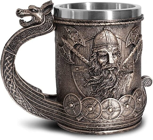 Deze Viking bierpul tilt de mannelijkheid van zijn man cave naar een hoger niveau. Het afgebeelde kunstwerk is prachtig ingewikkeld met een snijwerk van een viking op de zijkant. De roestvrijstalen voering betekent dat zijn bier koud blijft terwijl hij zijn kameraden vertelt over waarschijnlijk sterk overdreven heldendaden.