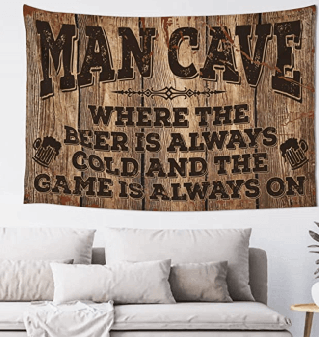 Als je regels hebt, kun je ze het beste laten zien! Dit man cave bord ziet eruit als een houten bord, maar het is eigenlijk een wandtappijt. Maak zijn Man Cave compleet met deze decoratie.