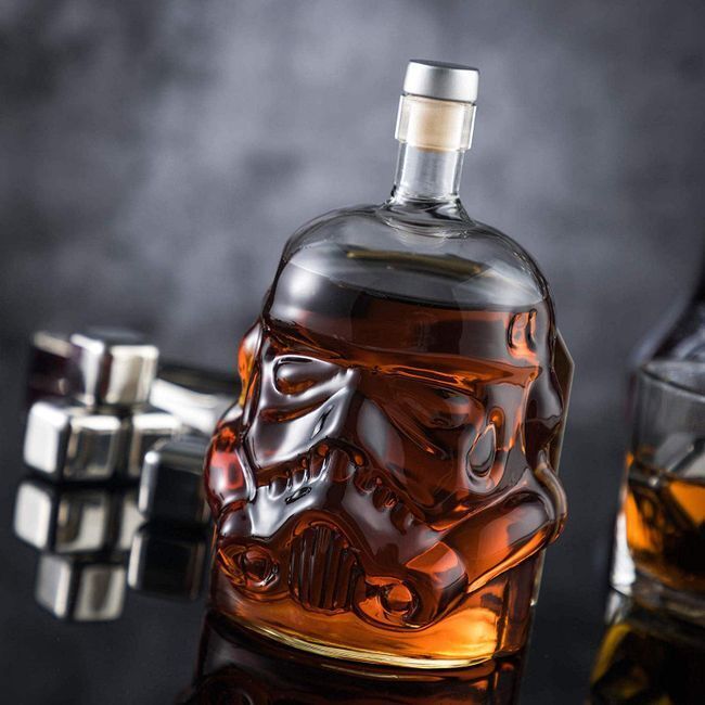 Dit creatieve Stormtrooper helmontwerp is uiterst cool voor mensen die van modieuze producten houden, want als hij gevuld is, geeft dat de rondingen en randen veel meer definitie. Gemaakt van hoogwaardig helder borosilicaatglas (milieuvriendelijk) met hittebestendige kwaliteit. 5 mm dik glas is duurzamer, moeilijk te breken en veilig in gebruik. Combineer hem met een geweldige fles bourbon zoals Four Roses, Makers Mark of Buffalo Trace. De perfecte aanvulling op zijn thuisbar. Set compleet met twee bijpassende drinkglazen.